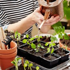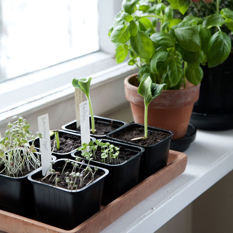 Så små frön ytligt på jordytan medan större frön planteras något djupare. Fukta jorden försiktigt med en fin dusch så att fröerna inte sköljs bort. Täck krukan med plast eller glas för att behålla fuktigheten. Sticklingar tas med en ren och vass kniv och sätts direkt i jorden, därefter täcks krukan med en plasthuva. Groning och rotning kan ta från någon vecka upp till flera månader beroende på växtslag. Placera sådder och sticklingar ljust men skyddat från stark, direkt sol. När fröerna har grott eller sticklingarna rotat sig tas täckningen bort. Plantera om i mer näringsrik jord när plantorna börjar stå tätt. Växter som ska planteras utomhus bör härdas successivt under några dagar på en skyddad och skuggig plats innan utplantering.
