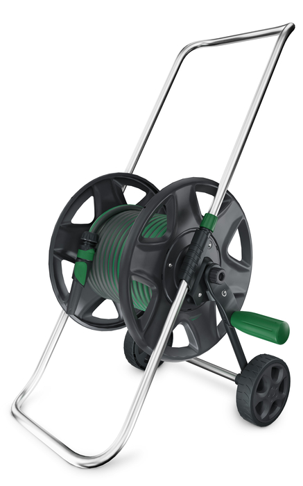 Slangvagnen har en kapacitet att förvara 60 m 1/2″ eller 30 m 3/4″ slang. Denna produkt är särskilt väl anpassad för Grimsholm´s bevattningstillbehör men också kompatibel med de övriga vanligt förekommande varumärkena på marknaden.