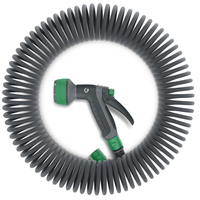 Spiralslang från Grimsholm är det platsbesparande och enkla alternativet för dig som behöver en trädgårdsslang som är upp till 15 m och vill slippa arbetet med att rulla upp slangen efter användning. När den inte används är slangen bara ca 60 cm och kan därför enkelt förvaras på liten yta.