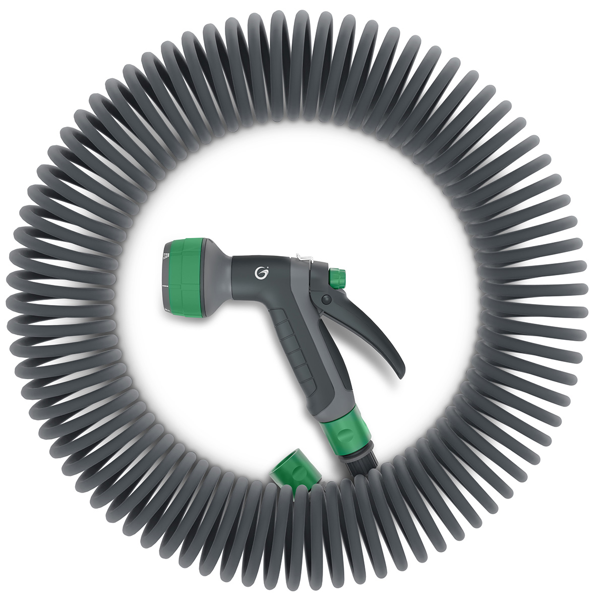 Slangen kan användas för applikationer upp till 25 bar arbetstryck. Kitet består av slang, snabbkopplingar och Grimsholm Multi Metal spraypistol där man genom att rotera på munstycket kan välja mellan hela 6 olika mönster vid bevattningen.