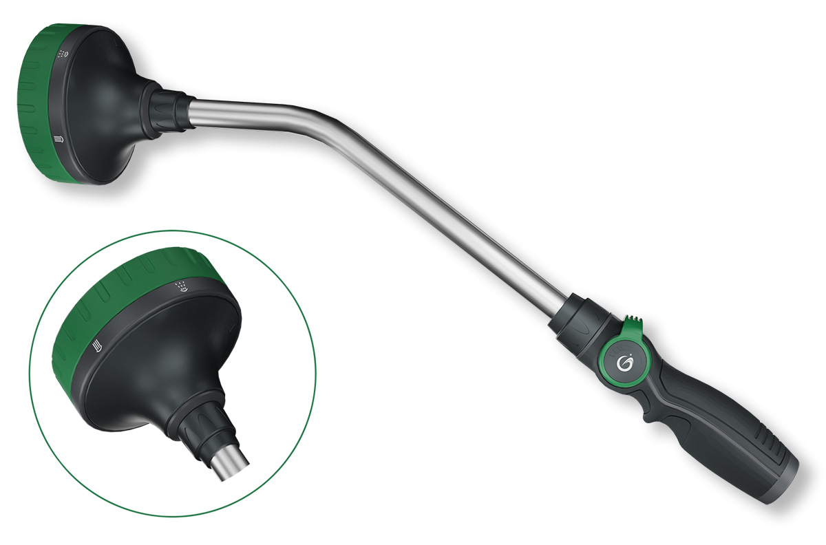 Med den 50 cm långa spraystaven från Grimsholm når du längre. Reglera flödet enkelt och bekvämt med tummen och välj mellan en mängd olika mönster på strålen genom att rotera munstycket till något av de 6 olika tillgängliga mönstren.