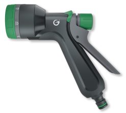 Med denna spraypistol från Grimsholm kan du enkelt och steglöst variera från den mjukaste dimsprayen till den hårdaste strålen. Du kan också justera mellan en mängd olika mönster på strålen genom att rotera munstycket till något av de 7 olika tillgängliga mönstren.