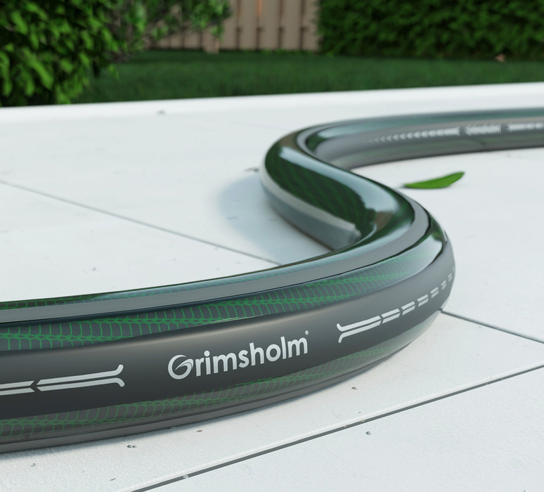 Slangen är UV-tålig, fri från skadliga ftalater och tungmetaller samt kompatibel med hela Grimsholm´s tillbehörs-sortiment inom bevattning. Maximalt arbetstryck för slangen är 36 bar.